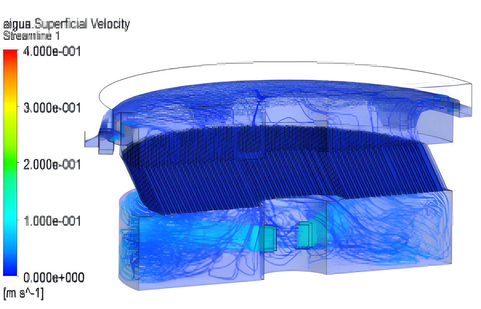 El mismo programa de cálculo, diseñado por los expertos de TecnoConverting, ofrece la posibilidad de previsualizar el camino del agua dentro del decantador, prever que zonas de la balsa serán las más efectivas y asegurar, así, el mayor rendimiento en la decantación, teniendo en cuenta el tipo de agua a tratar o concentración de sólidos en suspensión.
